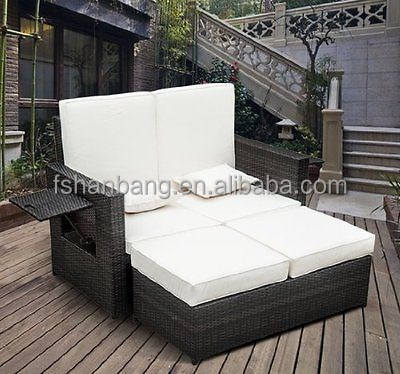 Article:Jardin moderne meubles en rotin de plein air canapé 2 places lit Sun Lounger