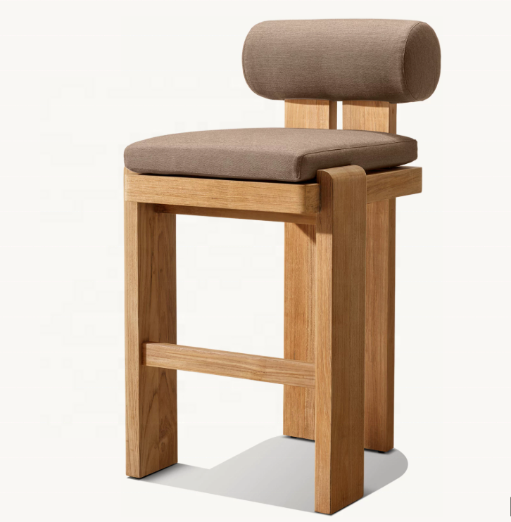 Chaise de bar et de salle à manger moderne en teck massif mobilier d'extérieur pour cour, patio, hôtel et parc