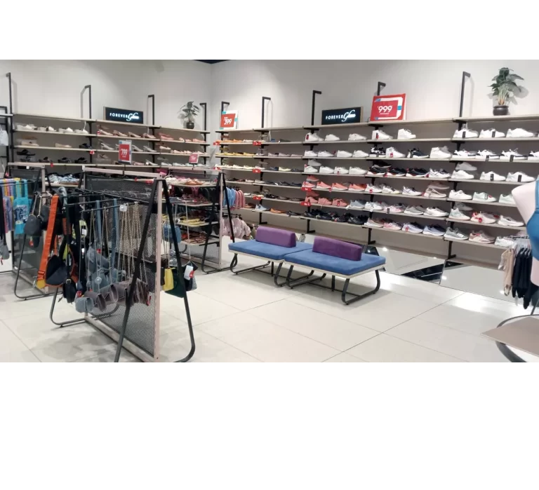 Design d'intérieur moderne pour showroom de vêtements, mobilier sur mesure pour magasin de vêtements, présentoirs, étagères murales, installation d'éclairage intelligent