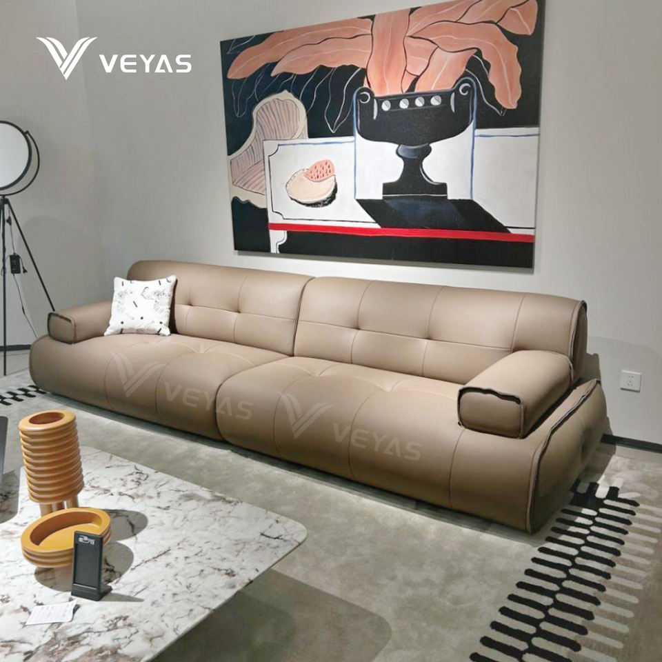Canapé modulaire moderne en cuir véritable, écologique, durable, personnalisable, bleu marine, beige, accoudoirs carrés
