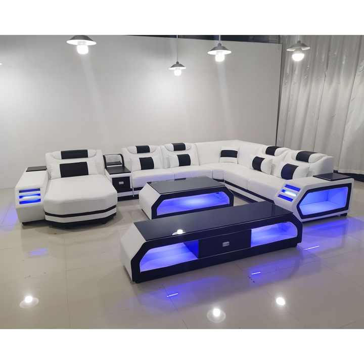 Ensemble de canapés modernes en cuir véritable pour salon avec haut-parleur musical USB, convertible et extensible - pour l'école, le parc et l'atelier