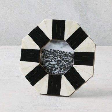 Cadre photo en résine abstrait géométrique moderne noir et blanc pour table et mur, avec cadres en bois