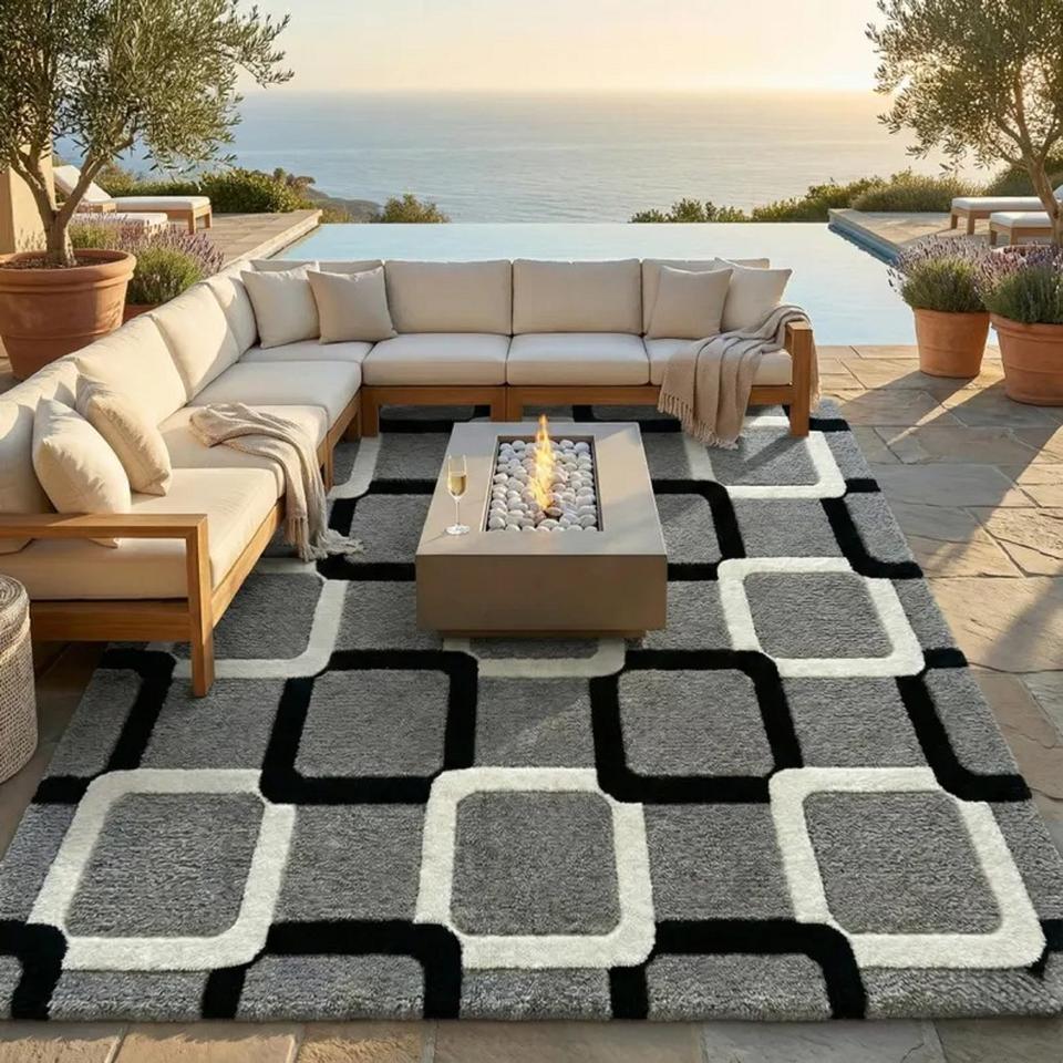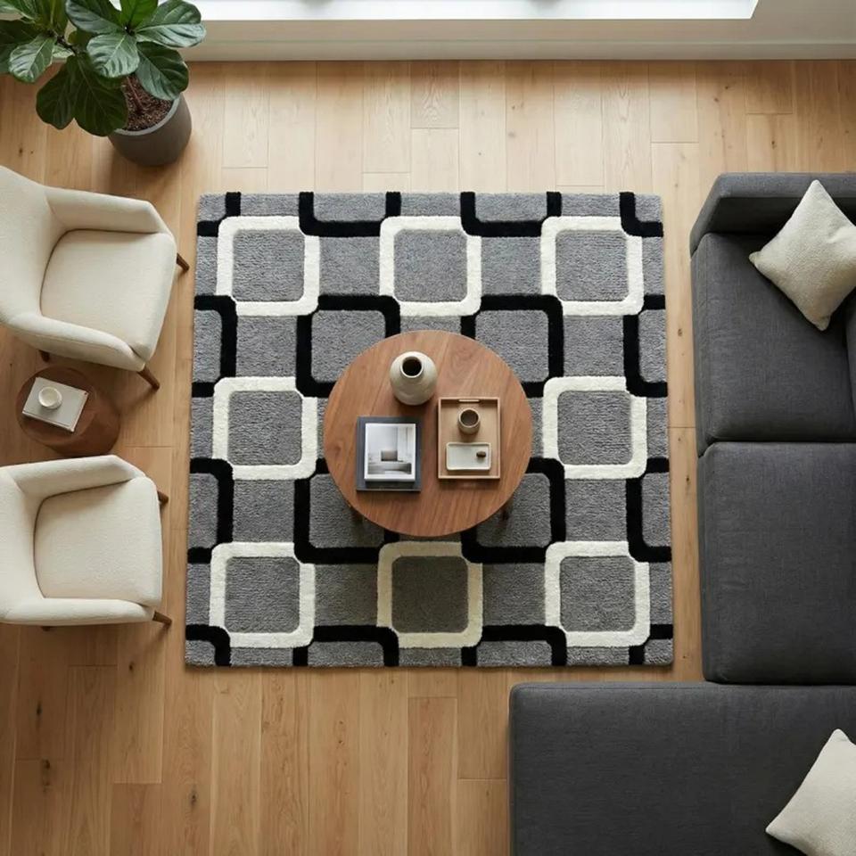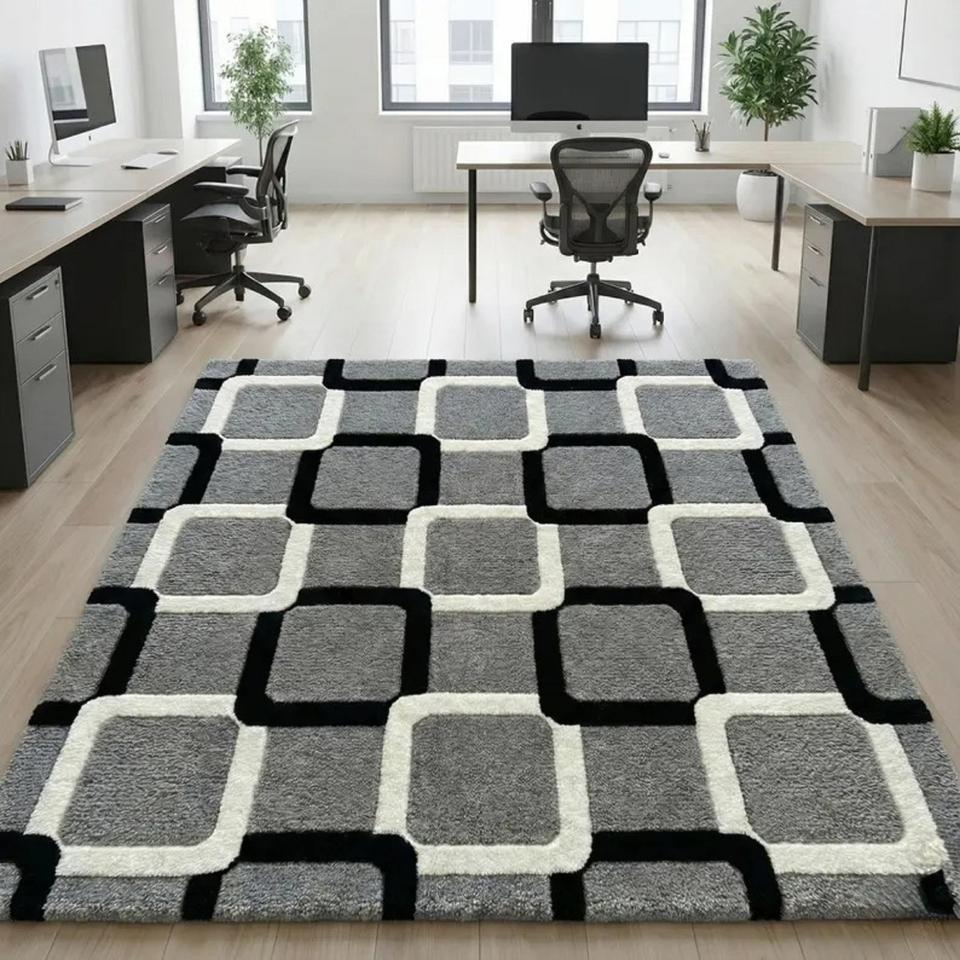 Tapis géométrique moderne, tapis moelleux en peluche tufté à la main, tapis antidérapant pour salon, chambre, bureau, hôtel, tapis décoratif