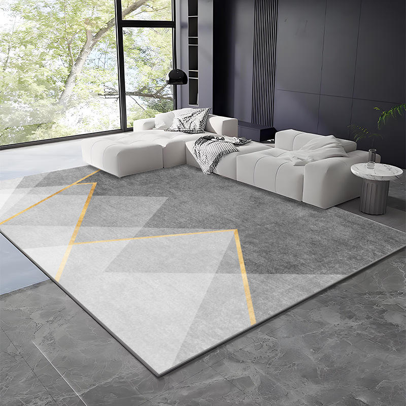 Tapis géométrique moderne carré en fibre de polyester, lavable à l'eau, antidérapant, pour salon, chambre, entrée H 087