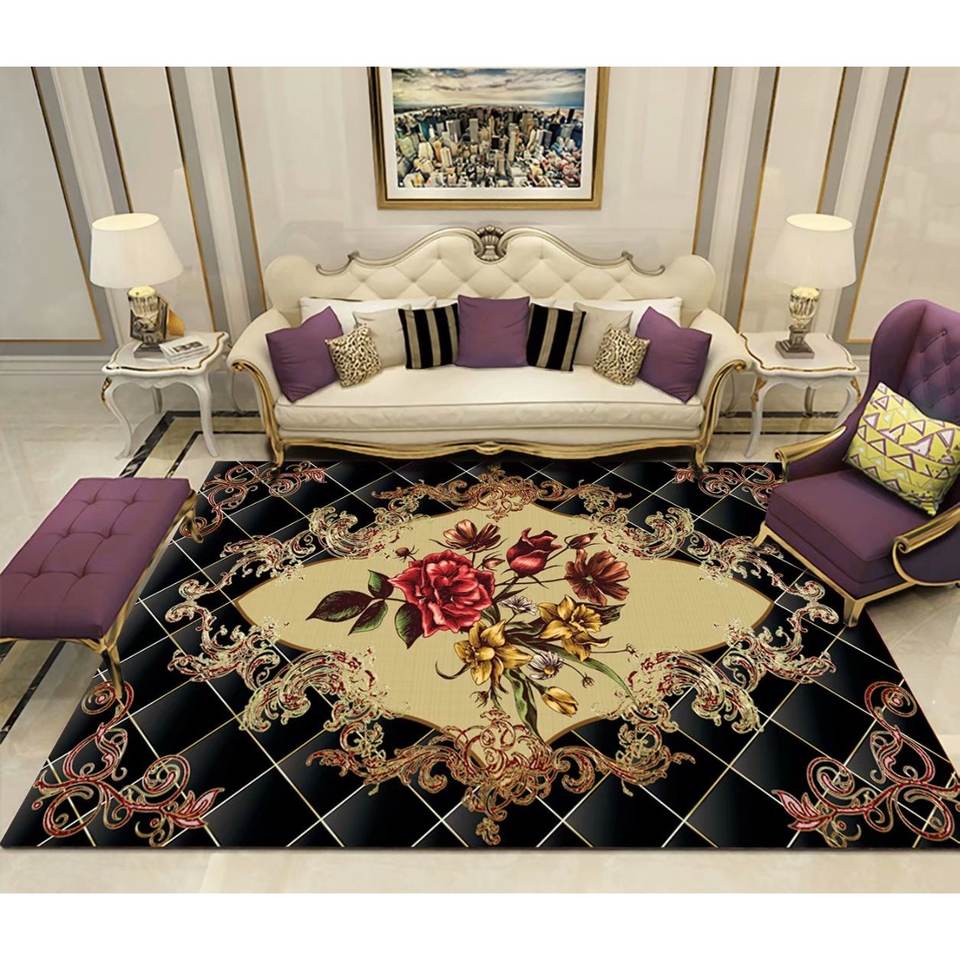 Tapis moderne en velours cristal géométrique, grand tapis sur mesure avec base antidérapante à pois pour salle à manger et chambre à coucher