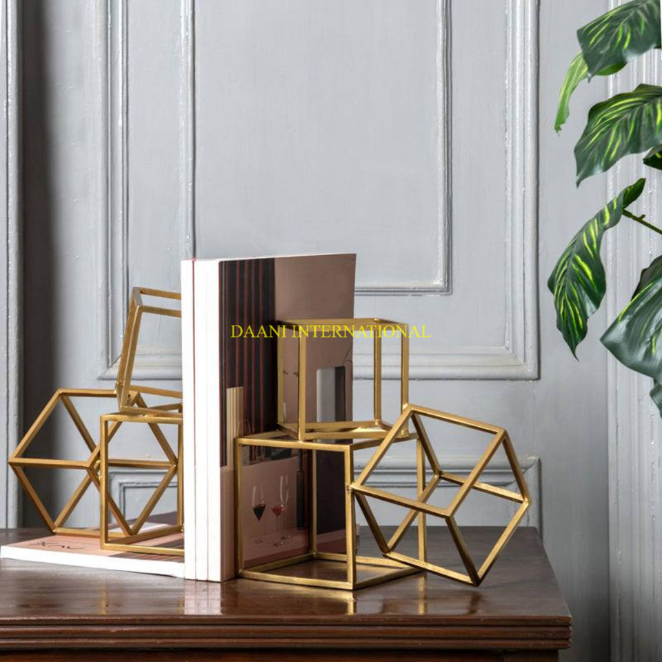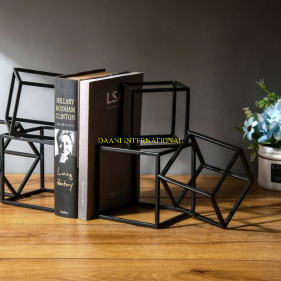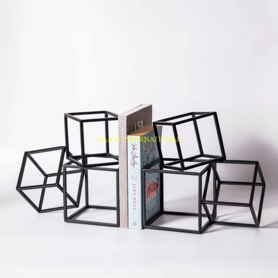 Serre-livres Cube géométrique moderne porte-livre décoratif en métal noir Style minimal industriel pour bureau chambre et étagère