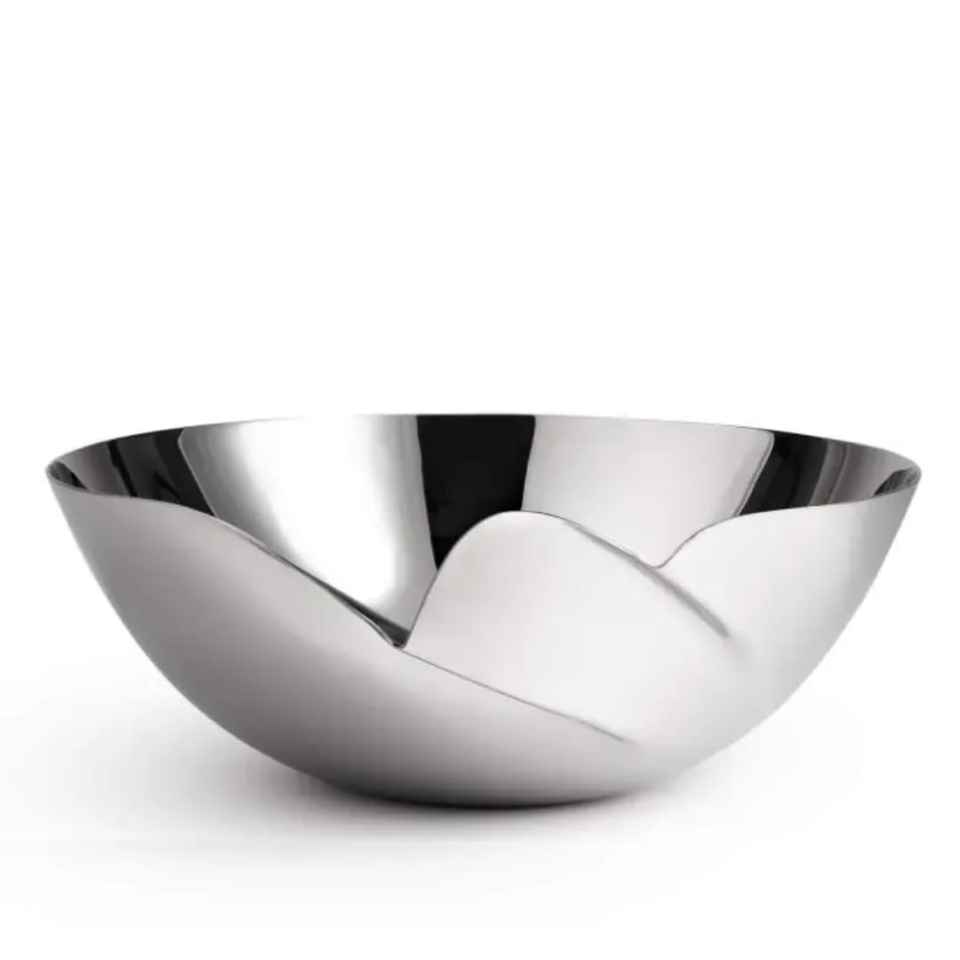 Bol de service pliable géométrique moderne en acier inoxydable poli, bol à salade de fruits, vaisselle de luxe en métal pour la maison
