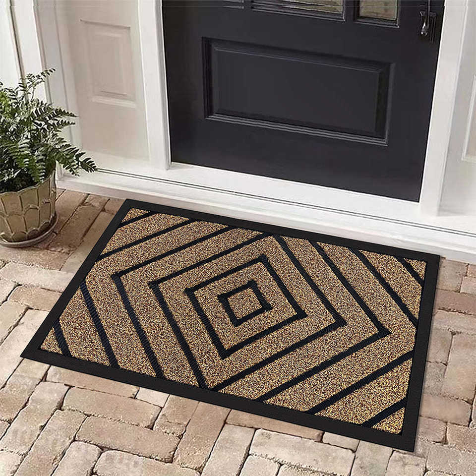Paillasson d'extérieur géométrique moderne rectangulaire antidérapant en PVC absorbant l'eau pour porte d'entrée