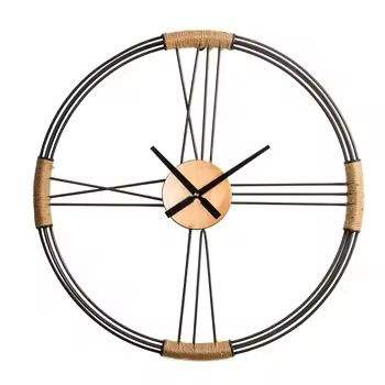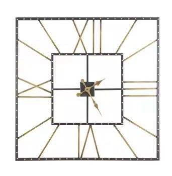 Horloge murale géométrique moderne avec cadre en métal doré et motif brun et blanc, mouvement silencieux, pour la décoration de salon scandinave