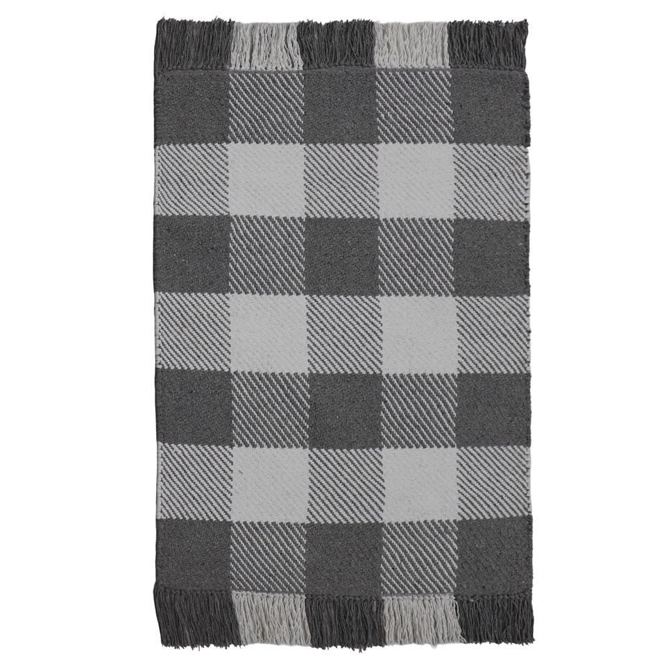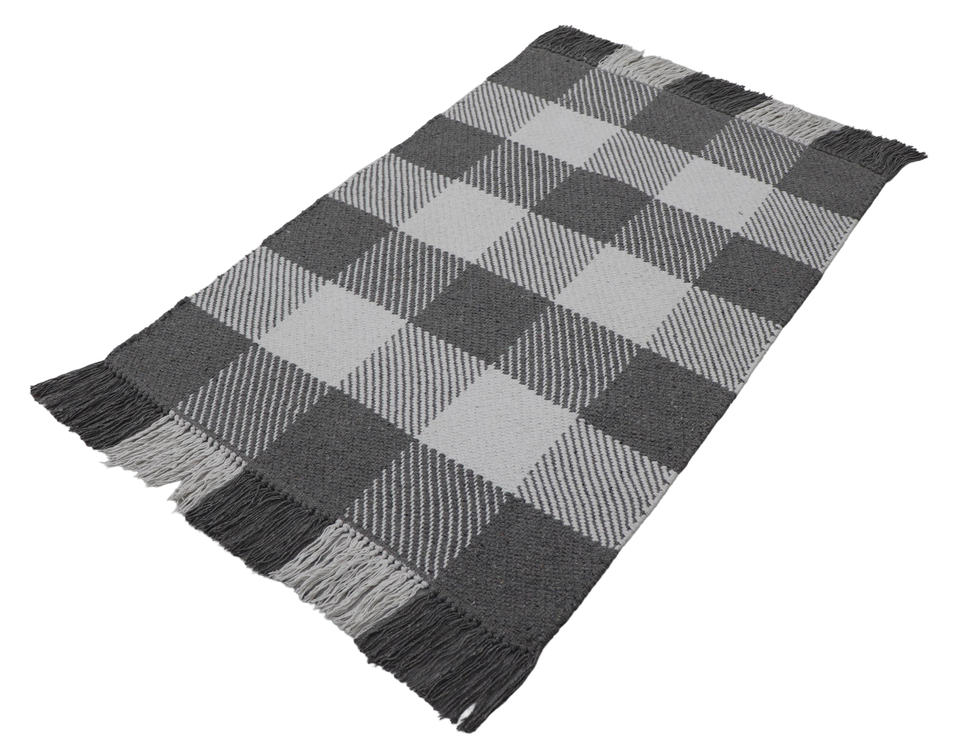 Tapis géométrique moderne en coton durable, tissé à la main, réversible, antidérapant, résistant aux taches, à carreaux, blanc anthracite