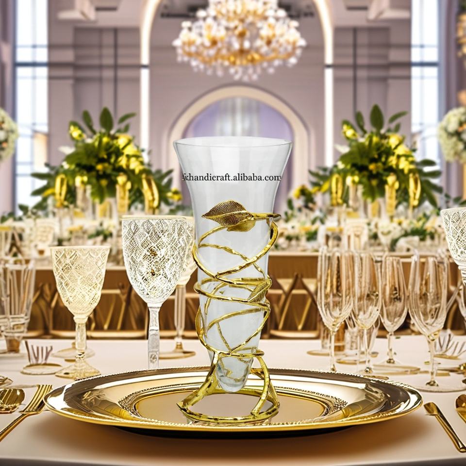 Nouveauté : Vase en verre moderne personnalisé I K, design amovible en feuille d'or nickelé, durable, centre de table pour mariage, décorations de table
