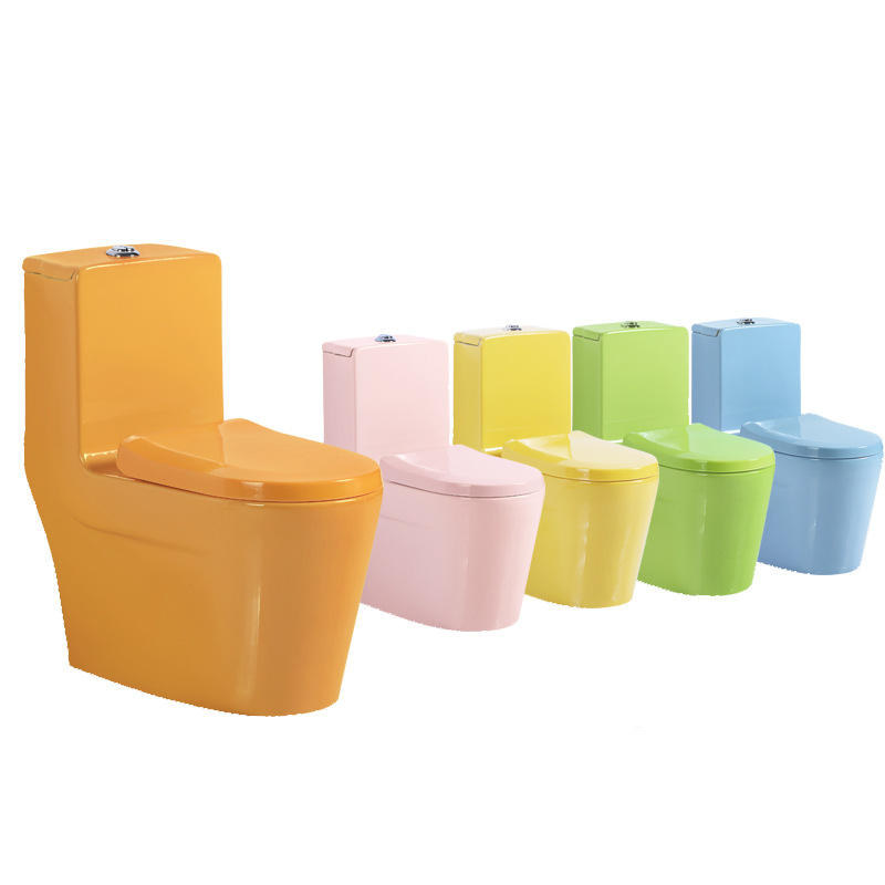 Siège de toilette monobloc en céramique émaillée moderne P-Trap à double chasse pour enfants lisse et autonettoyant pour les maisons et les hôtels Colorful Lovely