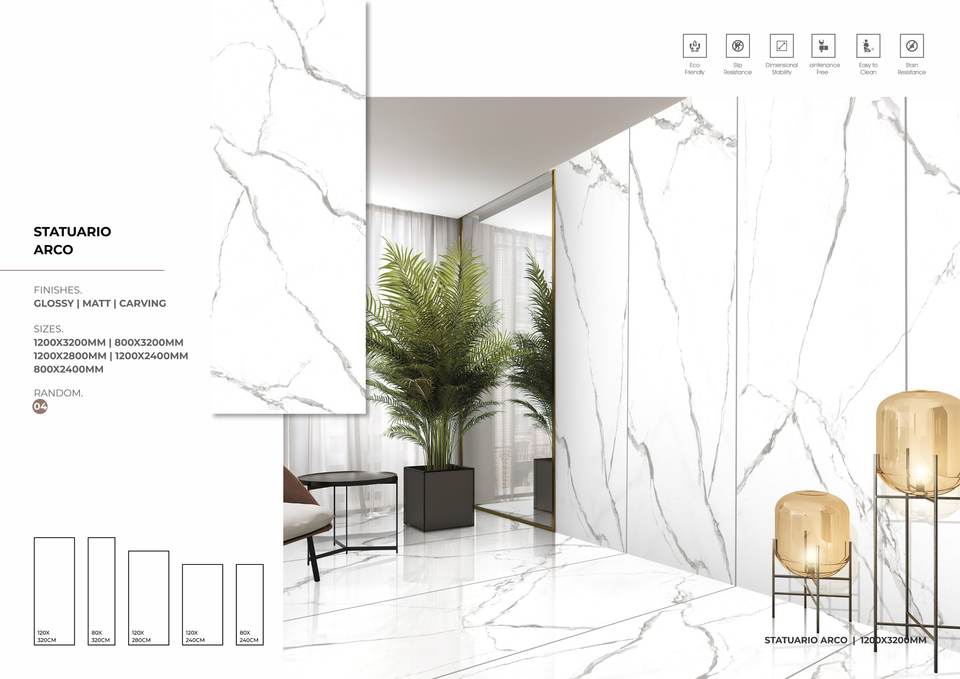 Carreaux en porcelaine à surface moderne et brillante | Taille personnalisée 1200x2800 800x3200 | Collection d'exportation haut de gamme grand format