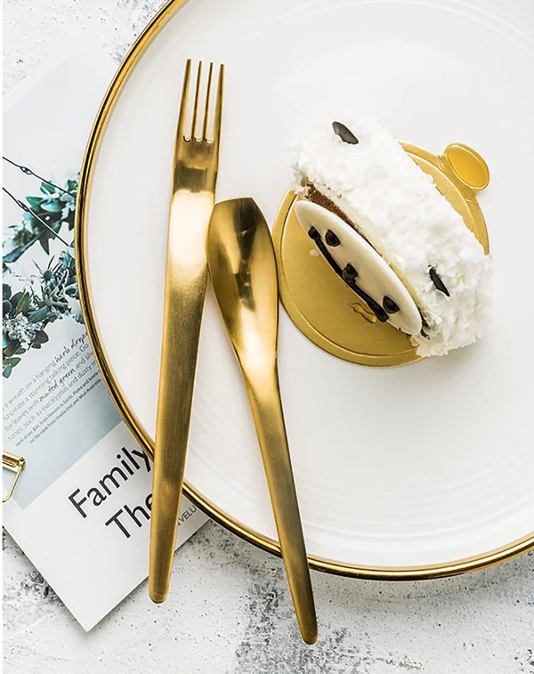 Ensemble de couverts modernes en or avec design polyvalent, couverts élégants pour la salle à manger, les cadeaux, les repas et les repas.