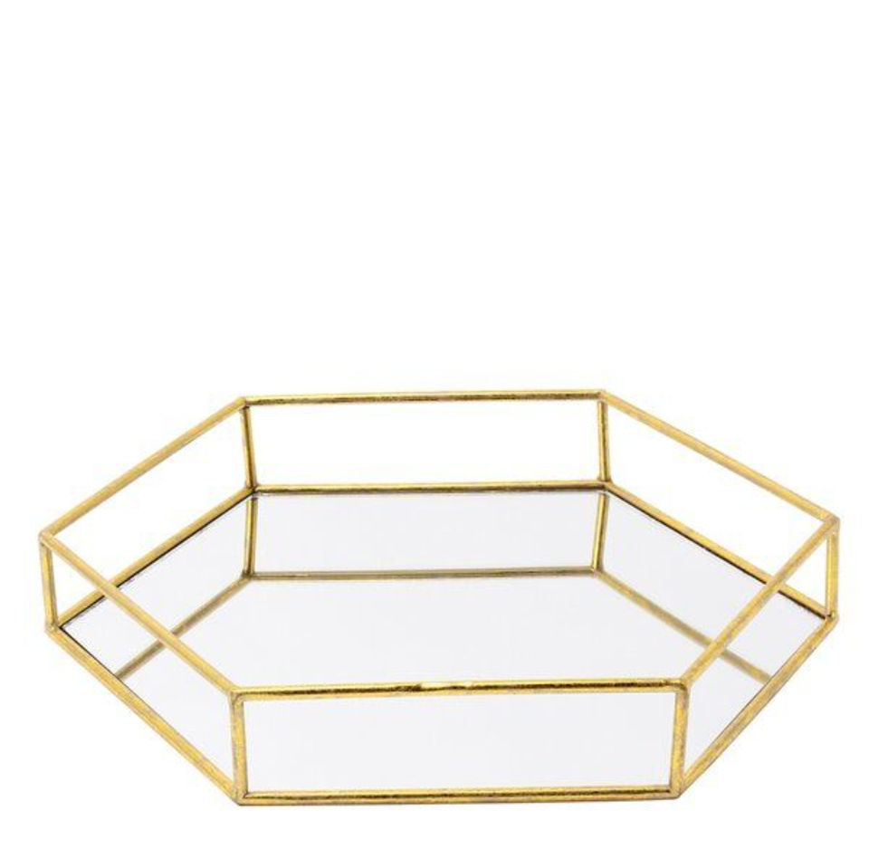 Plateau décoratif hexagonal moderne en verre miroir doré avec cadre métallique, plateau de service pour salon, décoration de table, luxe