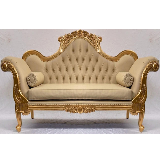 Causeuse de mariage italienne moderne avec cadre en feuille d'or Chaise en bois de teck Canapé victorien avec un magnifique décor de mariage