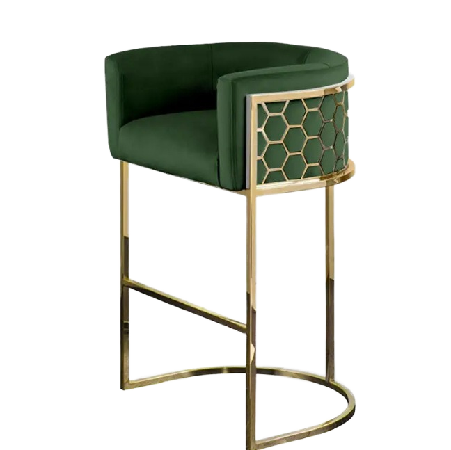 Tabouret de bar moderne avec structure en métal doré et siège rembourré, chaise de bar de luxe à hauteur de comptoir pour îlot de cuisine et bar à domicile