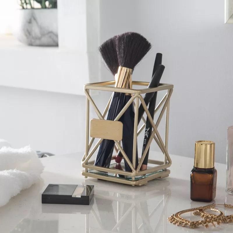 Bougeoir moderne à cadre en métal doré avec base en miroir élégant pour la décoration intérieure, centre de table ou jardin pour les cadeaux