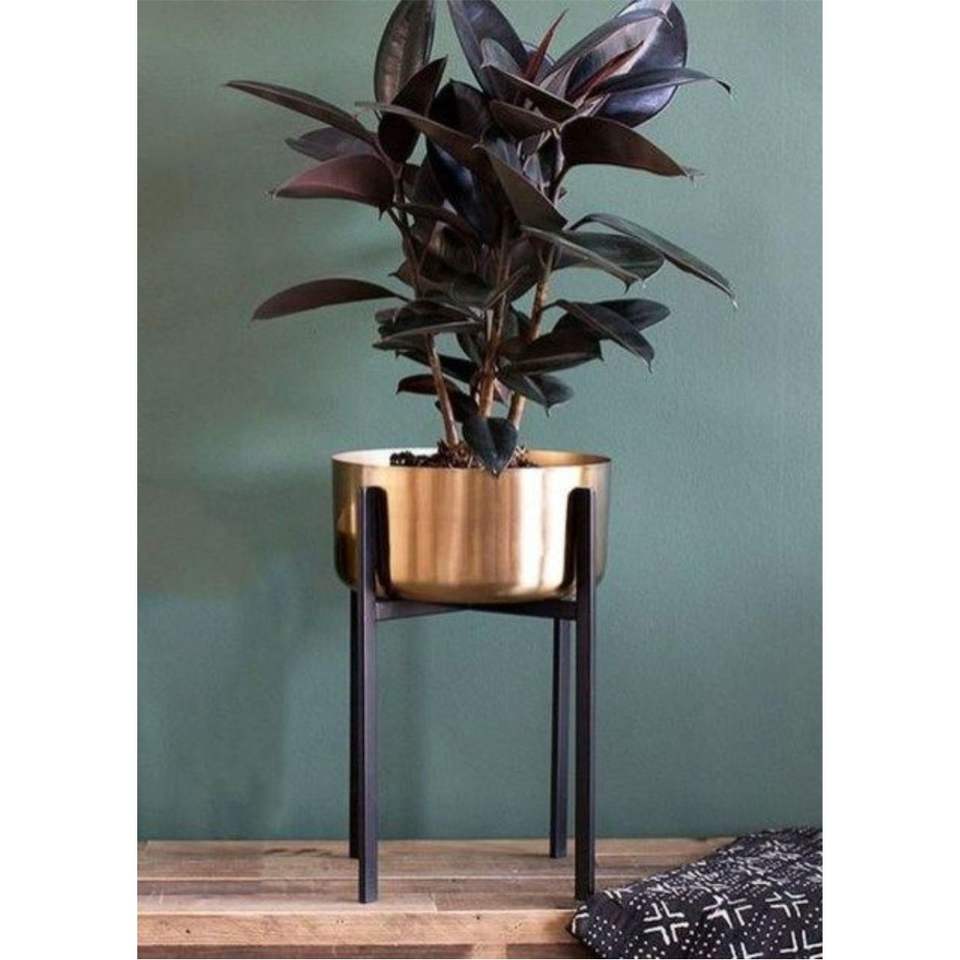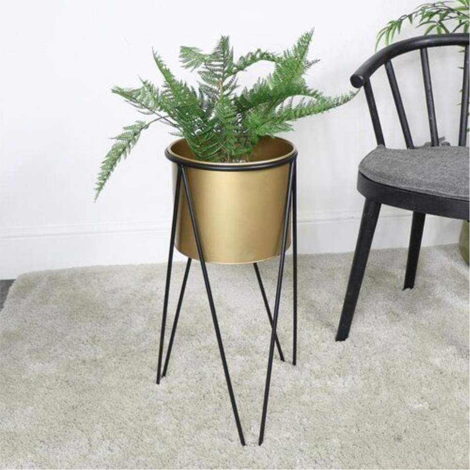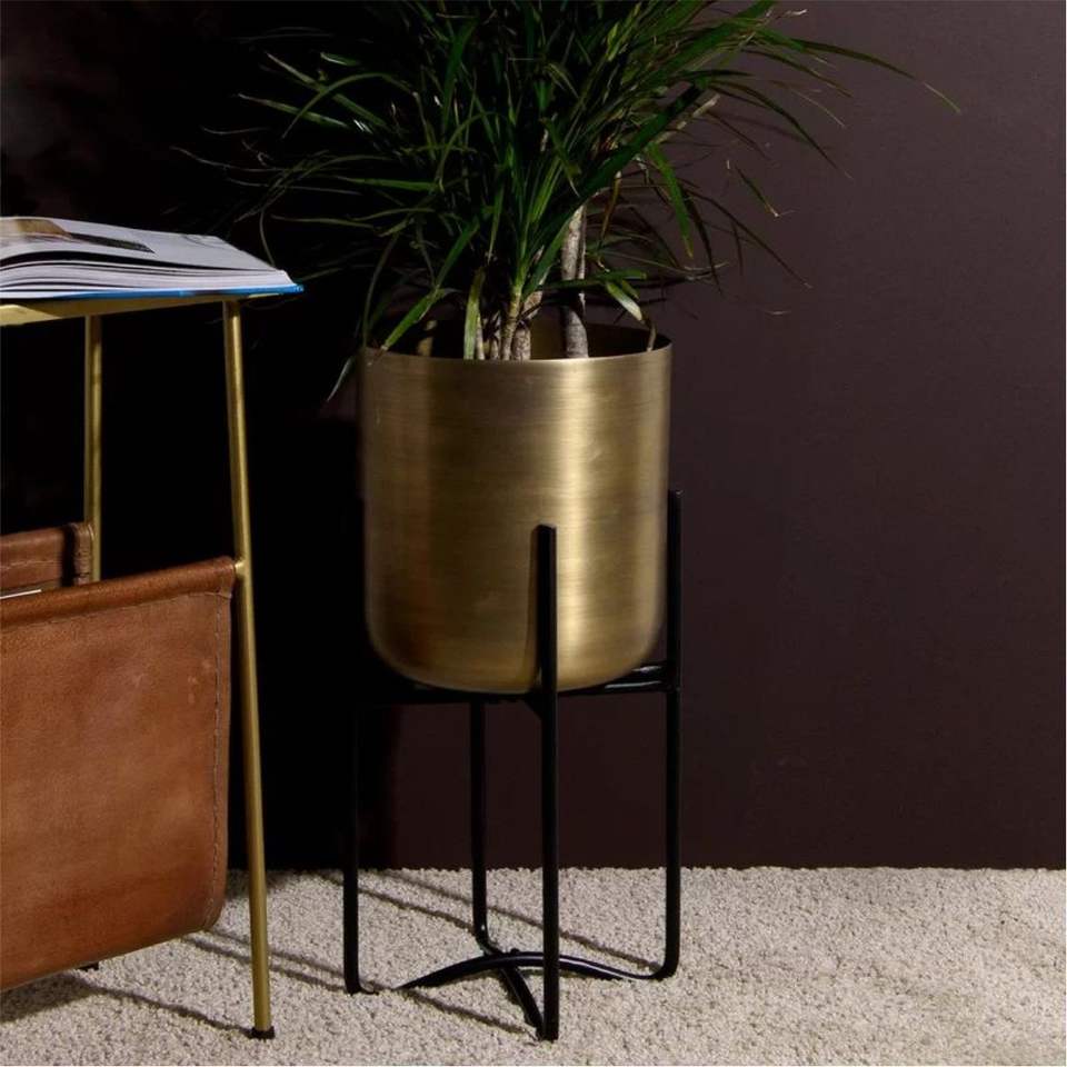 Ensemble de pots à fleurs en métal doré moderne avec support noir, pot à fleurs décoratif d'intérieur de luxe pour le salon, le jardin, la décoration de la maison