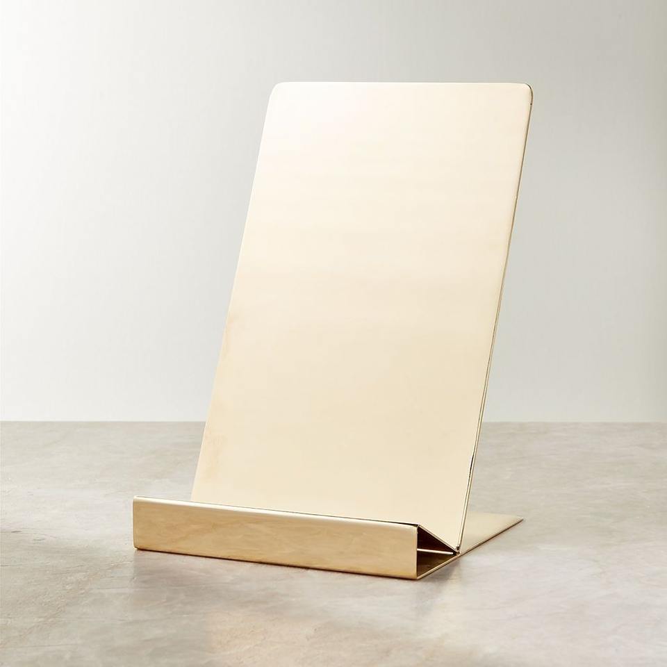 Support de livre de recettes moderne en métal doré, support minimaliste pour livre de cuisine, présentoir de comptoir élégant pour tablette et livre de cuisine