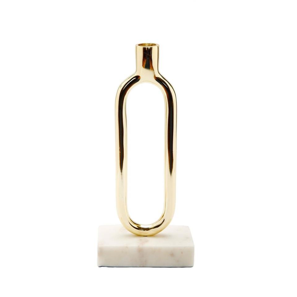 Porte-bougie double en métal doré moderne en forme de U, base en marbre noir, support décoratif pour bougies de table, style contemporain pour salon et salle à manger