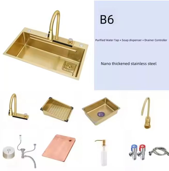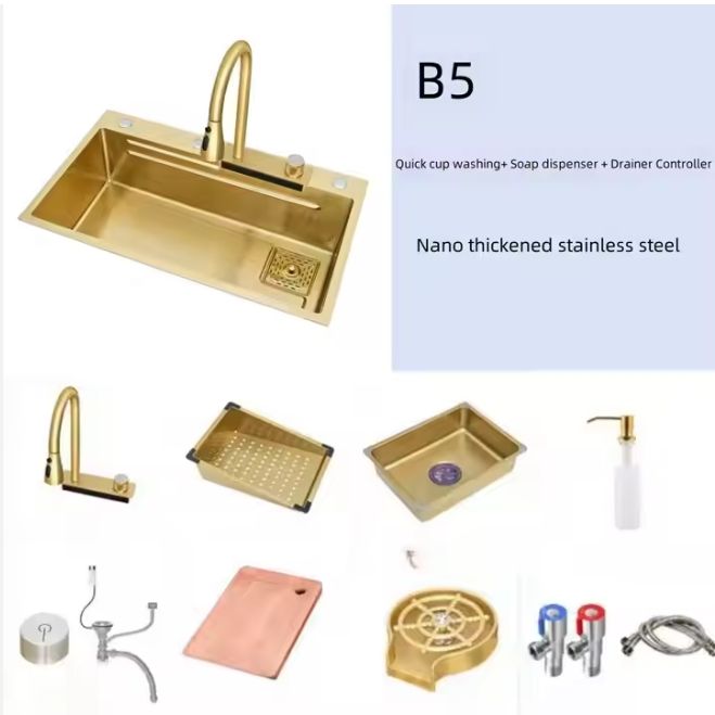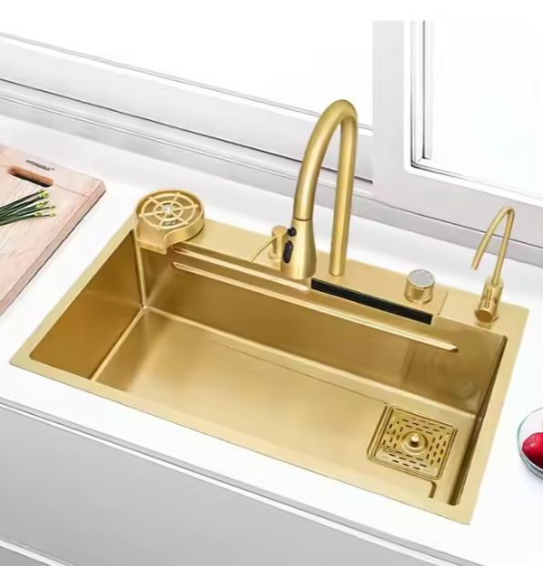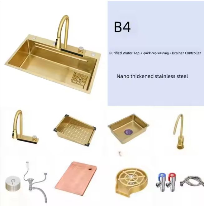 Robinet cascade multifonctionnel en or moderne, distributeur de tasses pour évier de cuisine en acier inoxydable 304