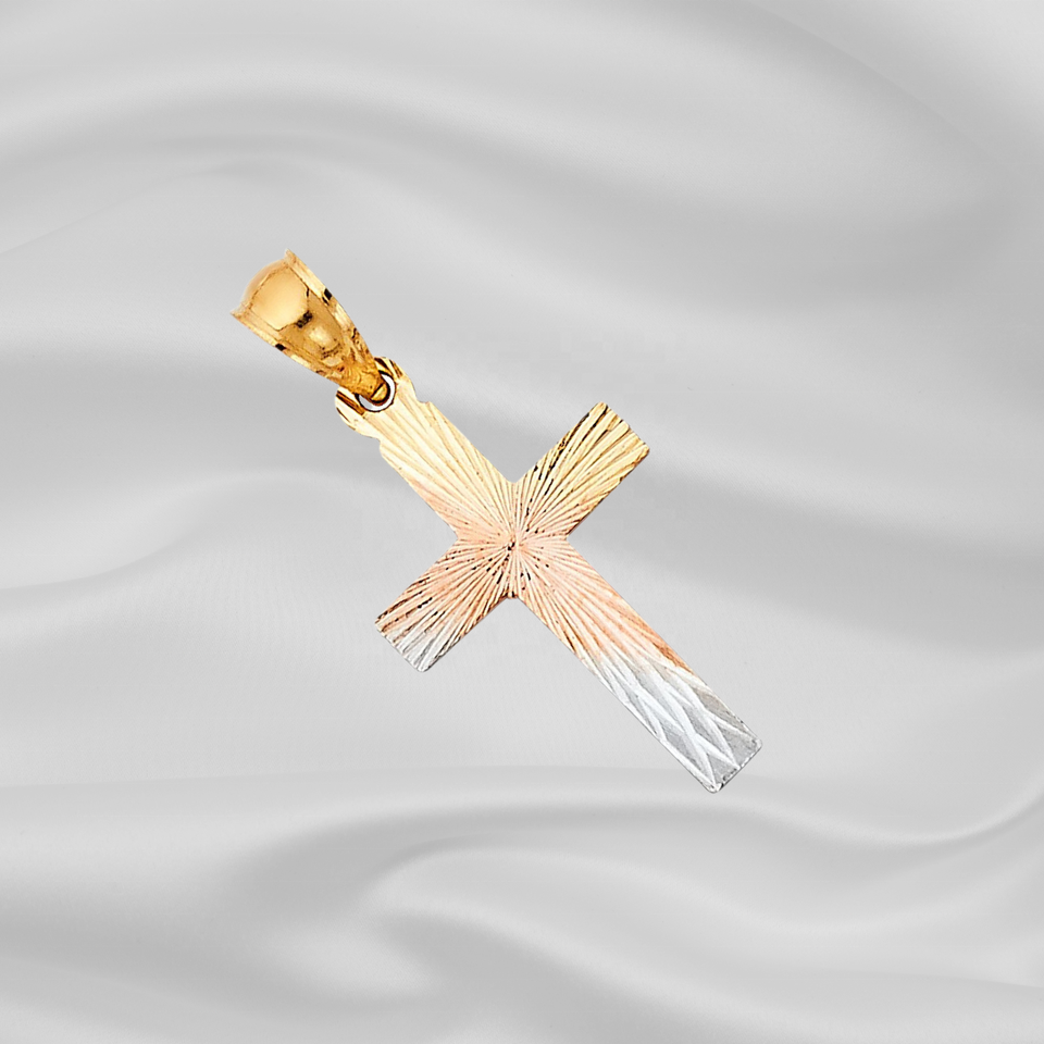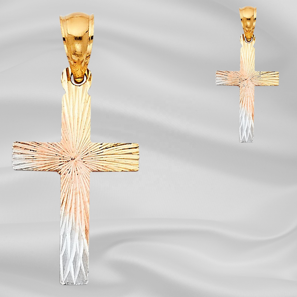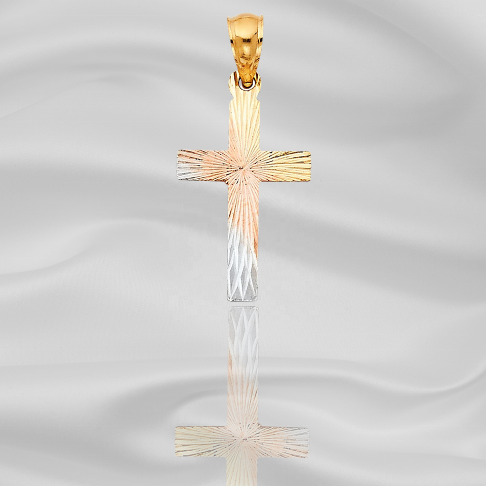 Nouveau pendentif à breloque en forme de croix plaqué or et argent moderne Nouveau collier à motif de bande accentué de diamant pour femmes enfants chrétiens