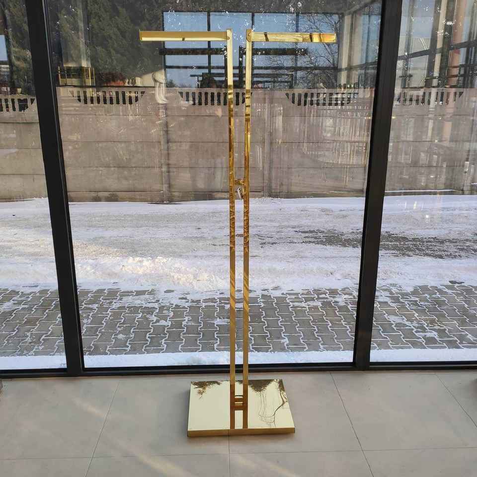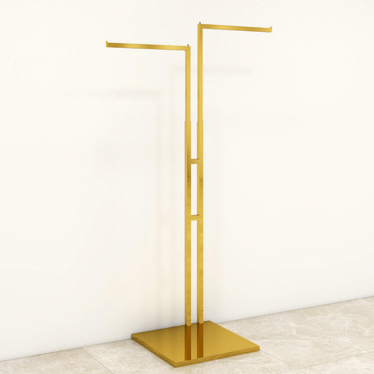 Porte-vêtements moderne en acier inoxydable doré, réglable en hauteur, pour présentation de vêtements, emballé en carton pour magasin de détail