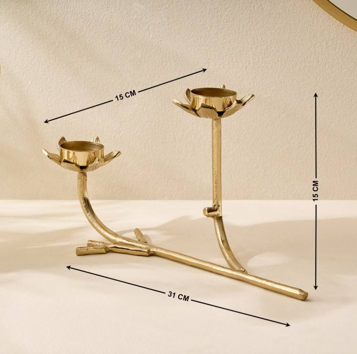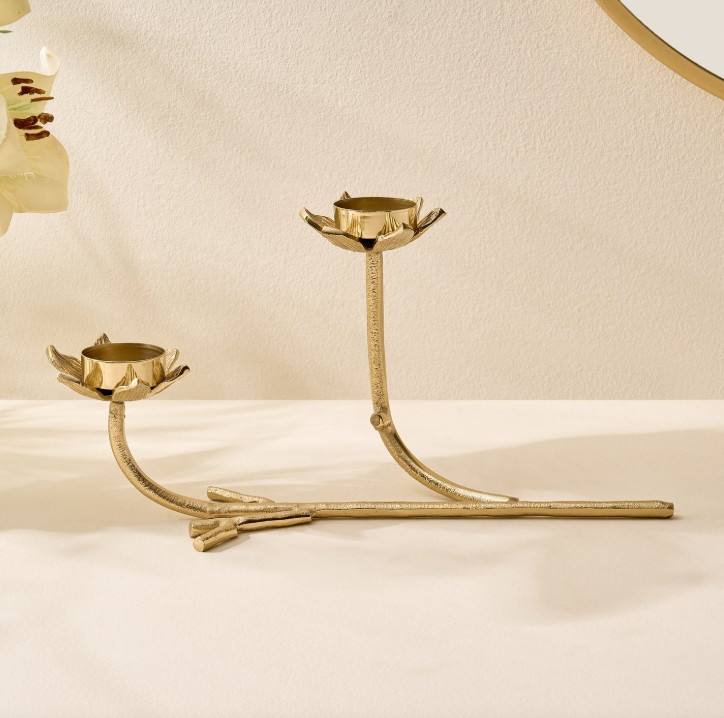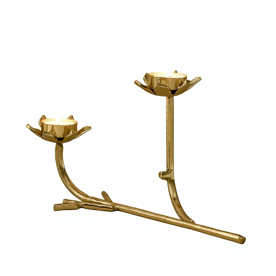 Support de bougie double en laiton doré moderne en forme de branche d'arbre, écologique, sans plomb, durable, motif lotus, pour décoration de Noël et de la maison