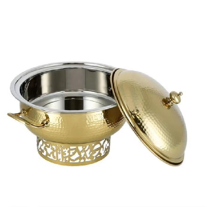 Plat de service moderne en acier inoxydable martelé doré, avec support découpé au laser, écologique et compatible lave-vaisselle – Nouveauté