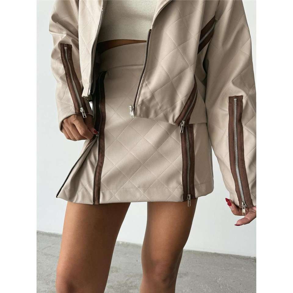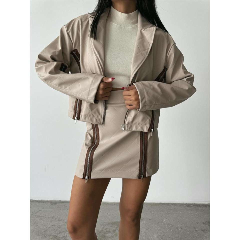 Jupe crayon gothique moderne avec fermeture éclair, en cuir véritable, longueur courte, broderie et volants, coupe ajustée, tissu denim