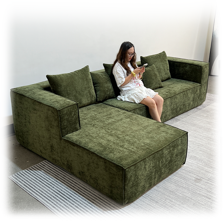 Canapé modulaire en velours vert moderne en forme de L avec méridienne pour salon et entrepôt | Horti Club