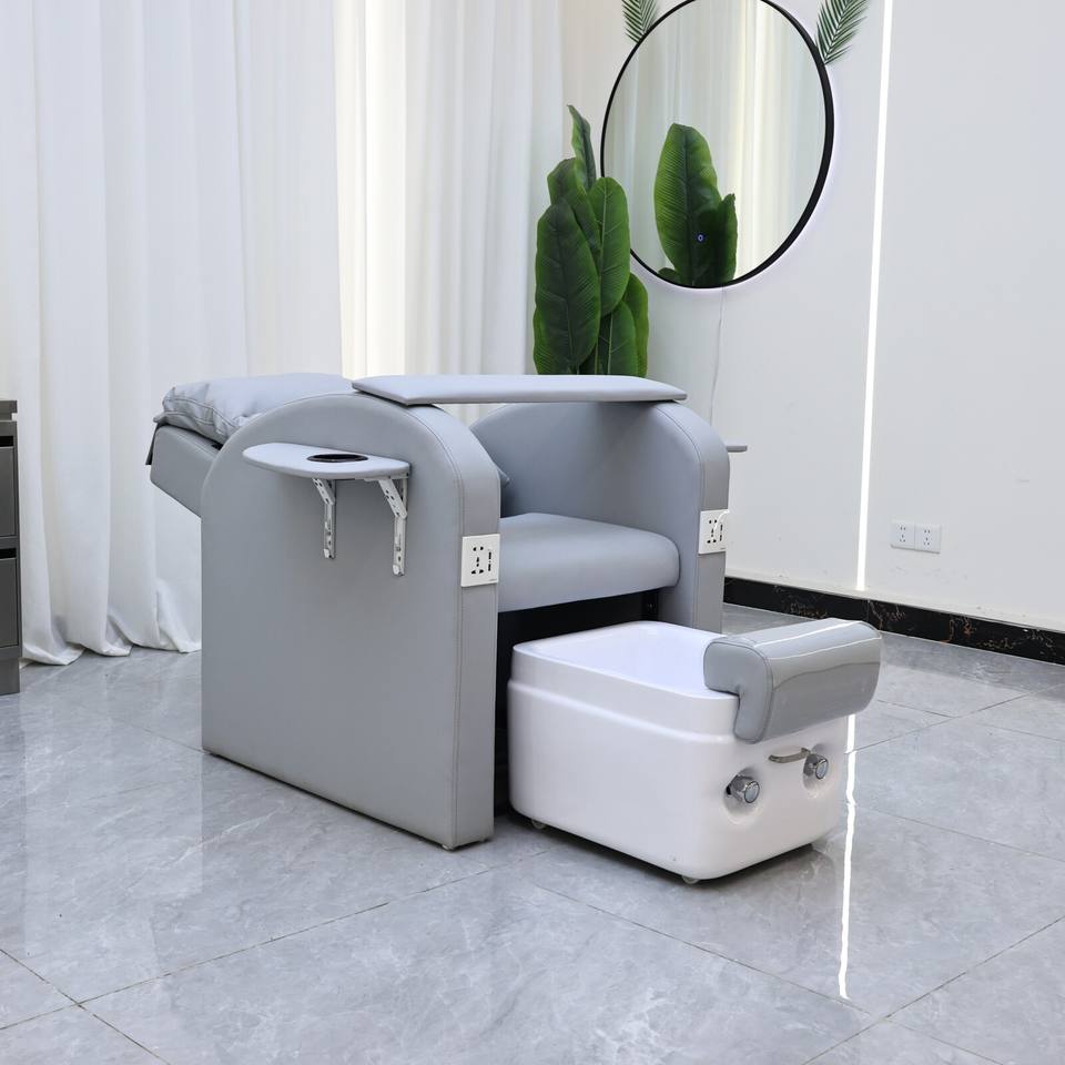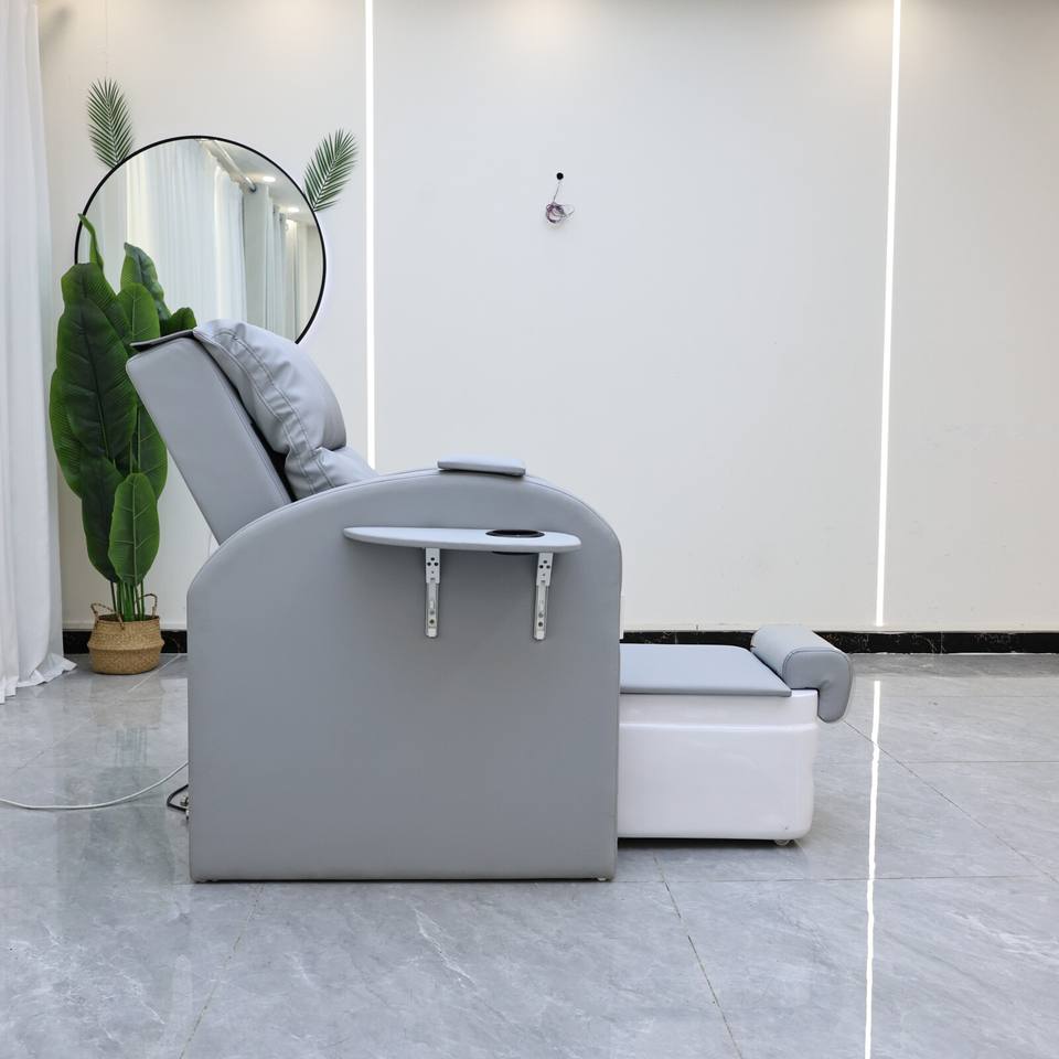 Fauteuil de pédicure moderne gris réglable pour salon de manucure et spa avec télécommande et système de jet sans tuyau à drainage automatique