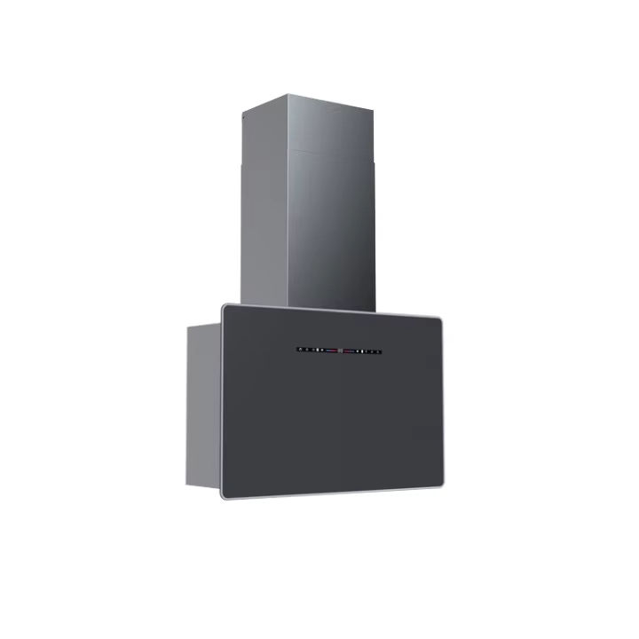 Hotte de cuisine inclinée grise moderne pour usage quotidien, anti-traces de doigts et cheminée en maille d'aluminium pour cuisine