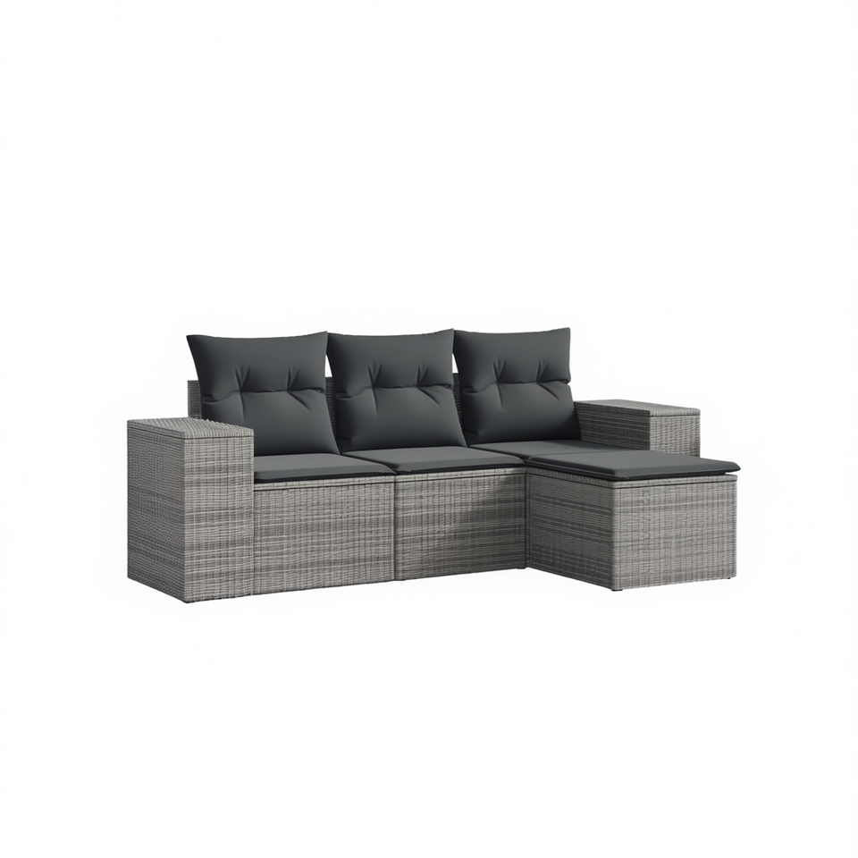 Ensemble de canapé de jardin en rotin gris moderne 3 places, mobilier d'extérieur résistant aux intempéries, design contemporain