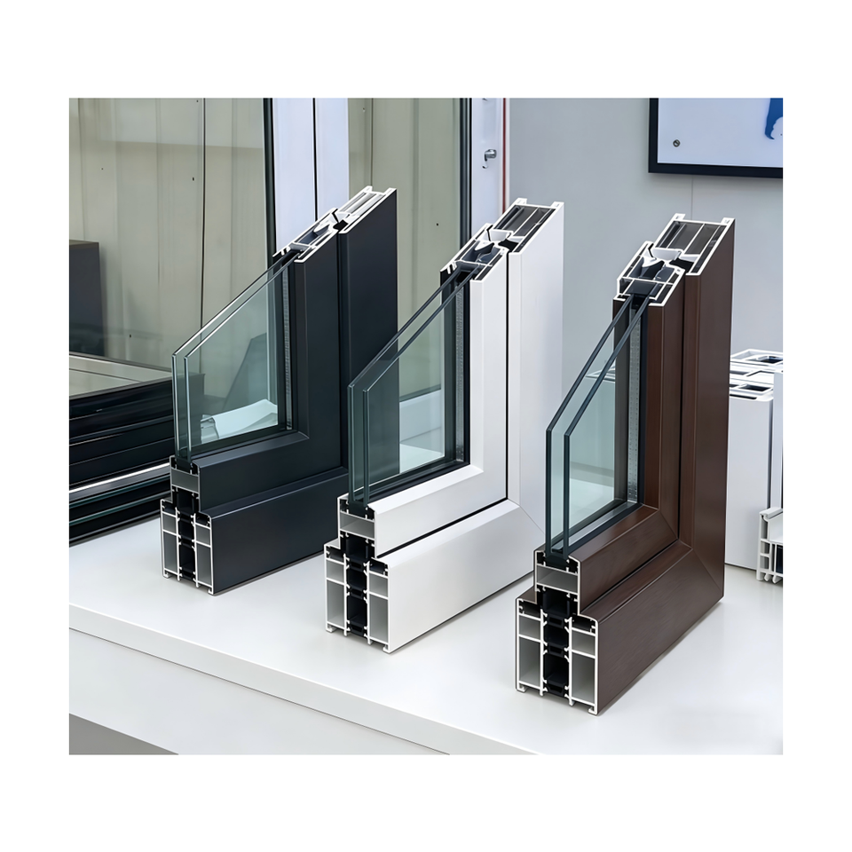 Porte/Fenêtre Coulissante Horizontale Antivol en PVC Gris Moderne, Design Fin pour Villa, Appartement, Extérieur