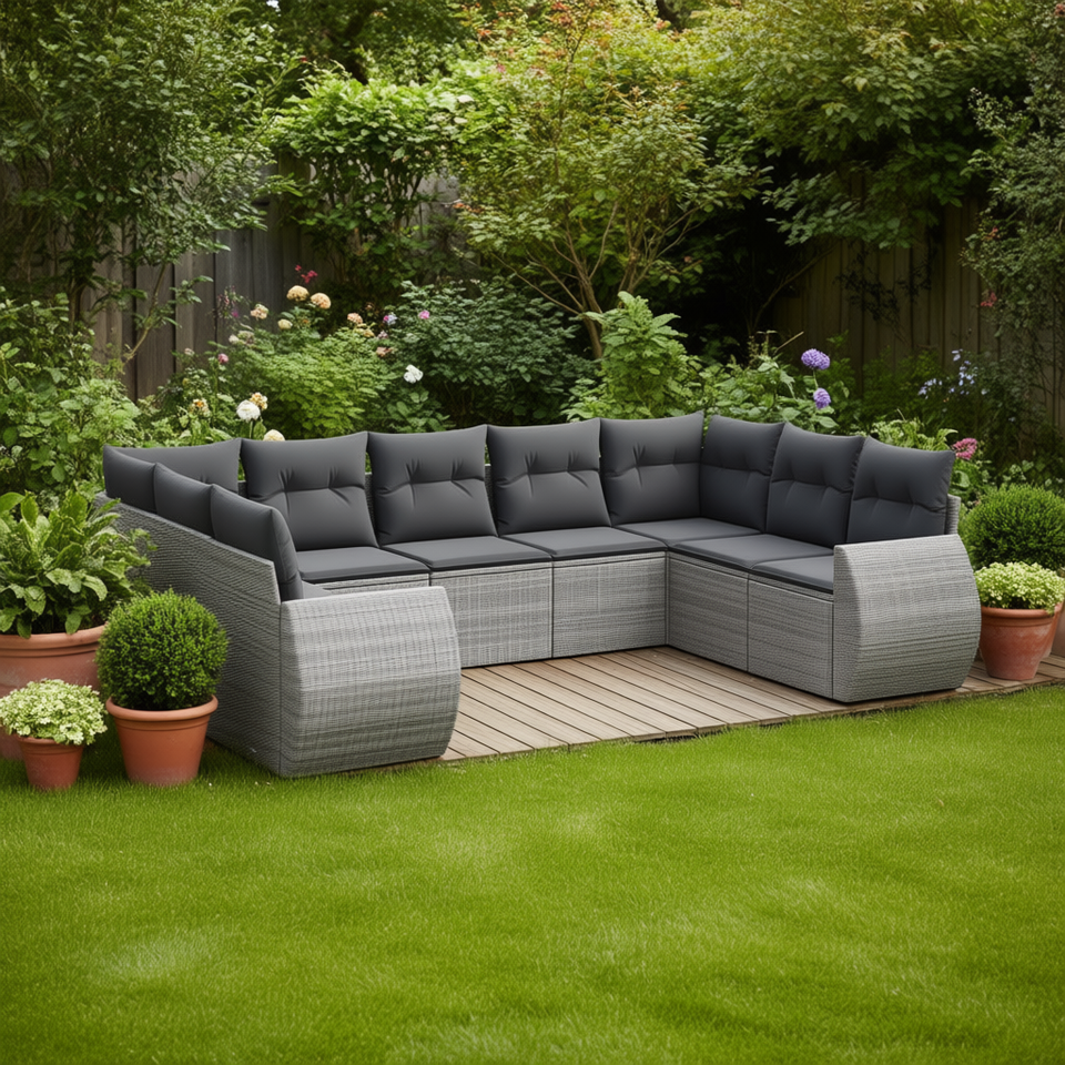 Modern Grey Poly Rattan Garden Sofa Set 6 Seater Modular Outdoor Furniture Contemporary Design