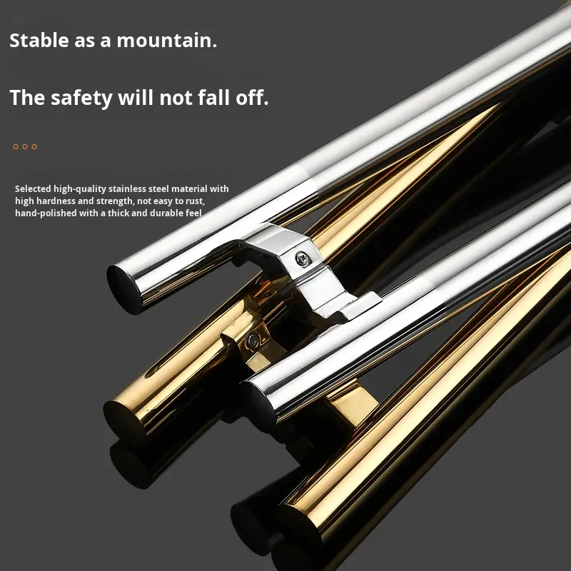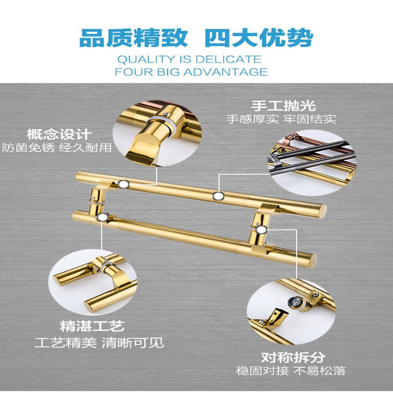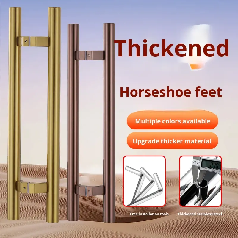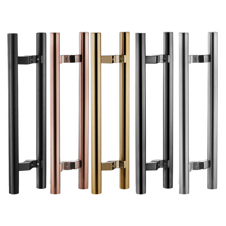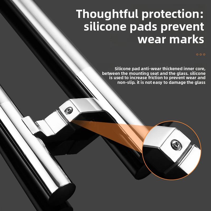 Poignée de porte en verre en acier inoxydable en forme de H moderne avec coins biseautés épaissis, à montage latéral pour portes de douche et d'hôtel