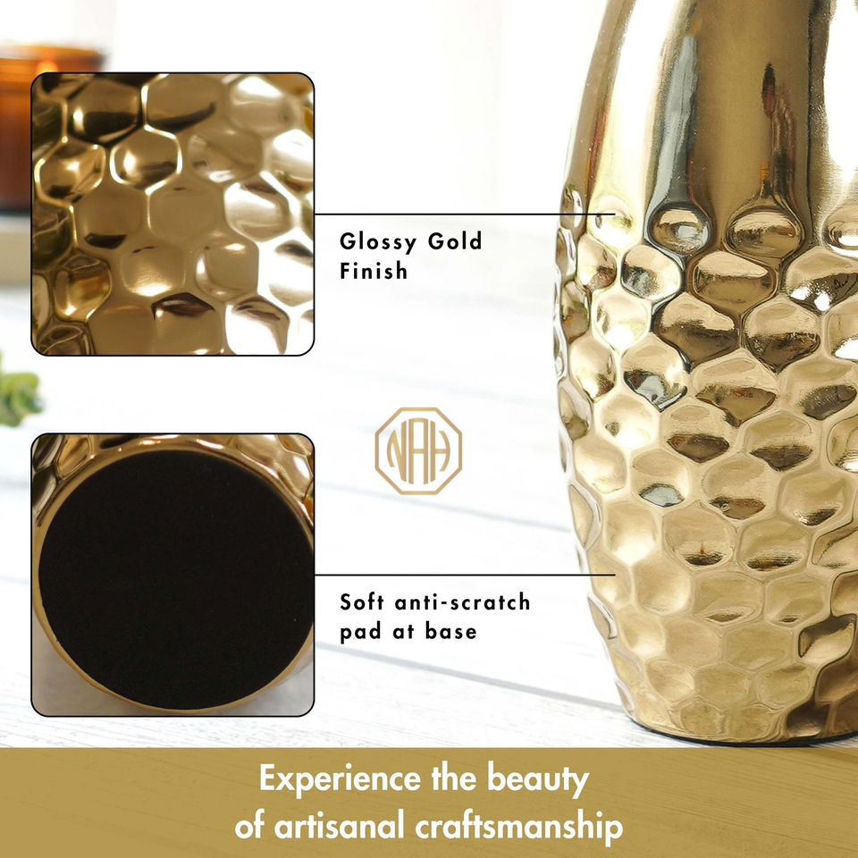 Vase en métal doré à moitié martelé moderne Pot de fleur design élégant Décoration de bureau à domicile contemporaine Styling Wholesale Export