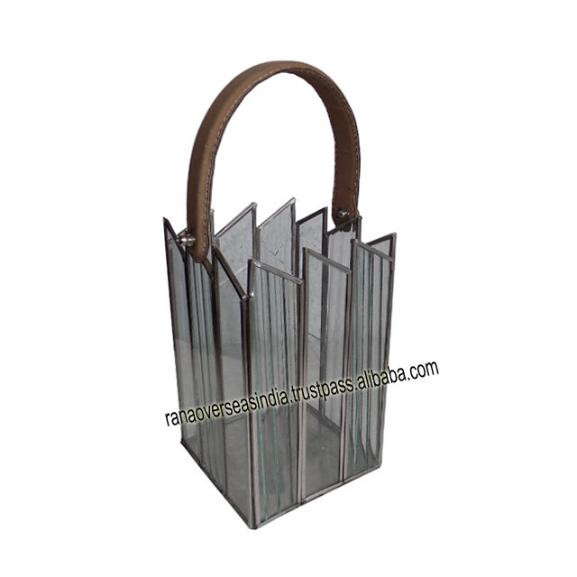 Hand Bag Style Glass And Stainless Steel Lantern