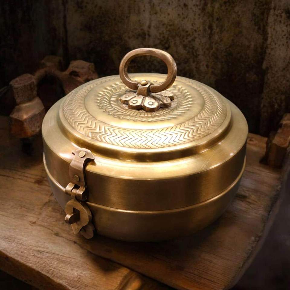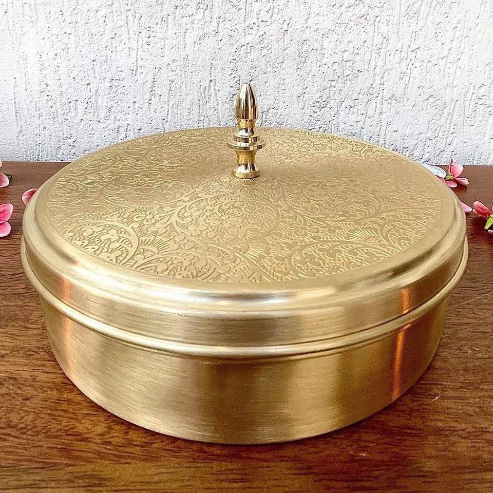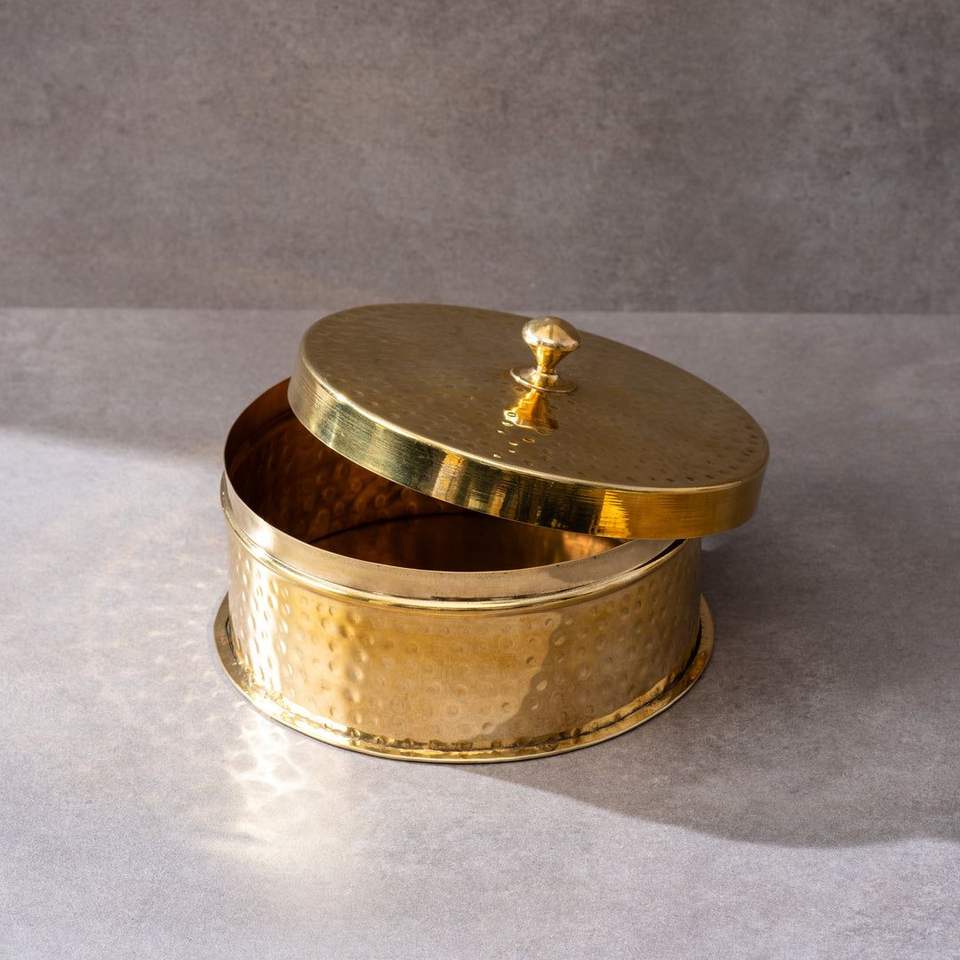 Boîte à épices au design moderne martelé à la main avec cuillère en laiton doré de K Golden Brass