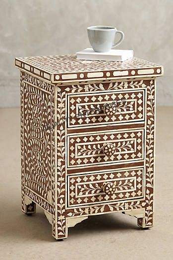 Table de chevet moderne en os incrusté, fabriquée à la main - Décoration d'intérieur respectueuse de l'environnement