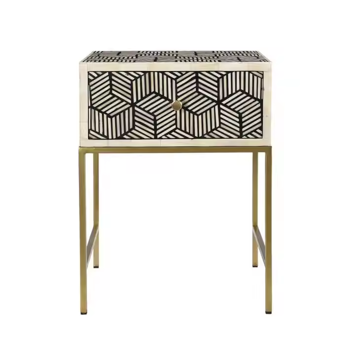 Table de chevet de table de chevet de console en incrustation d'os pour la chambre à coucher par Crescent Crafts