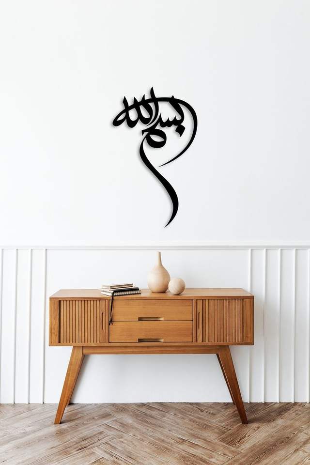 Décoration murale islamique moderne fabriquée à la main avec des motifs de calligraphie arabe en métal, parfaite pour les styles d'intérieur musulmans
