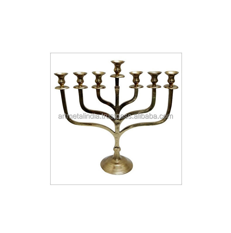 Bougeoir Menorah 7 têtes moderne fait à la main Décoration de temple juif la plus vendue pour Noël Conception unique de candélabres faits à la main