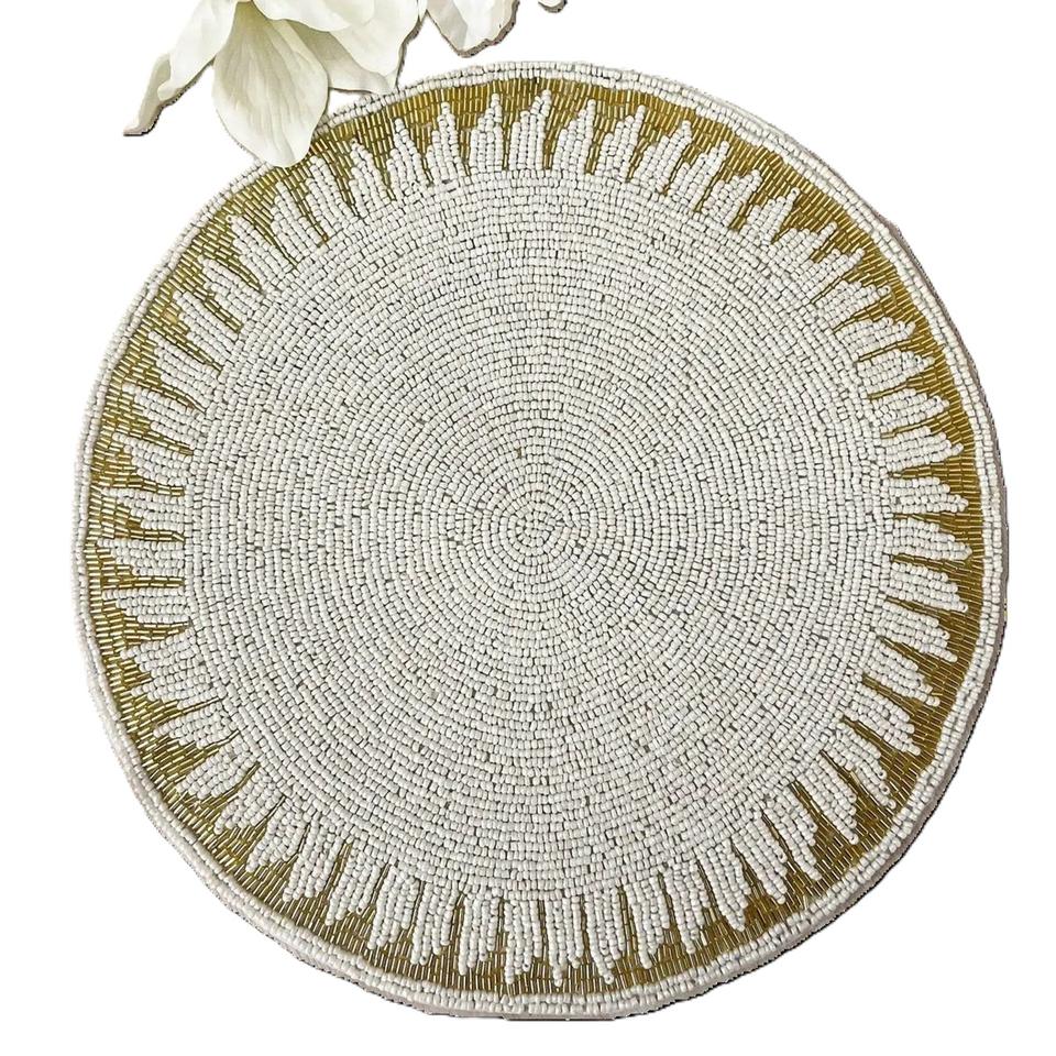 Ensemble de sets de table perlés faits main modernes, design festif, brodés de perles de rocaille, pour la décoration de table