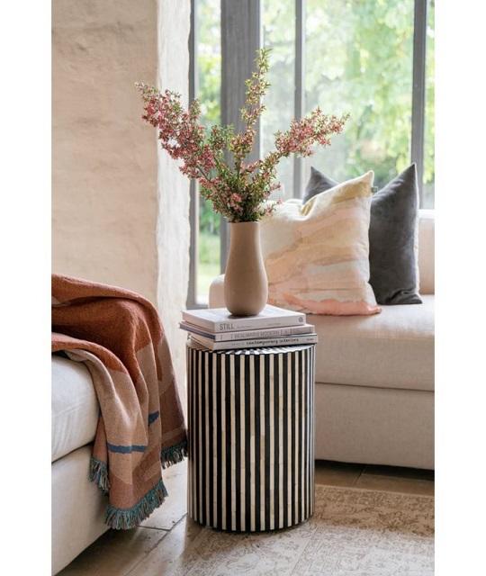 Tabouret de bout de tambour moderne fait à la main Table d'appoint basse en incrustation d'os pour le salon et la chambre à coucher-Royal Deco March's Wooden End Table Design