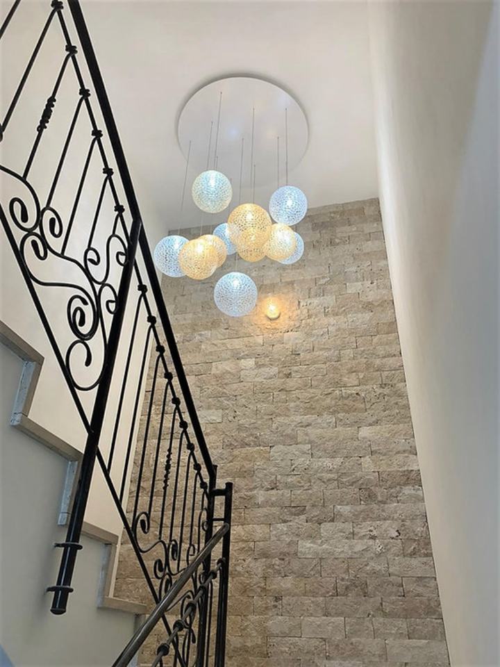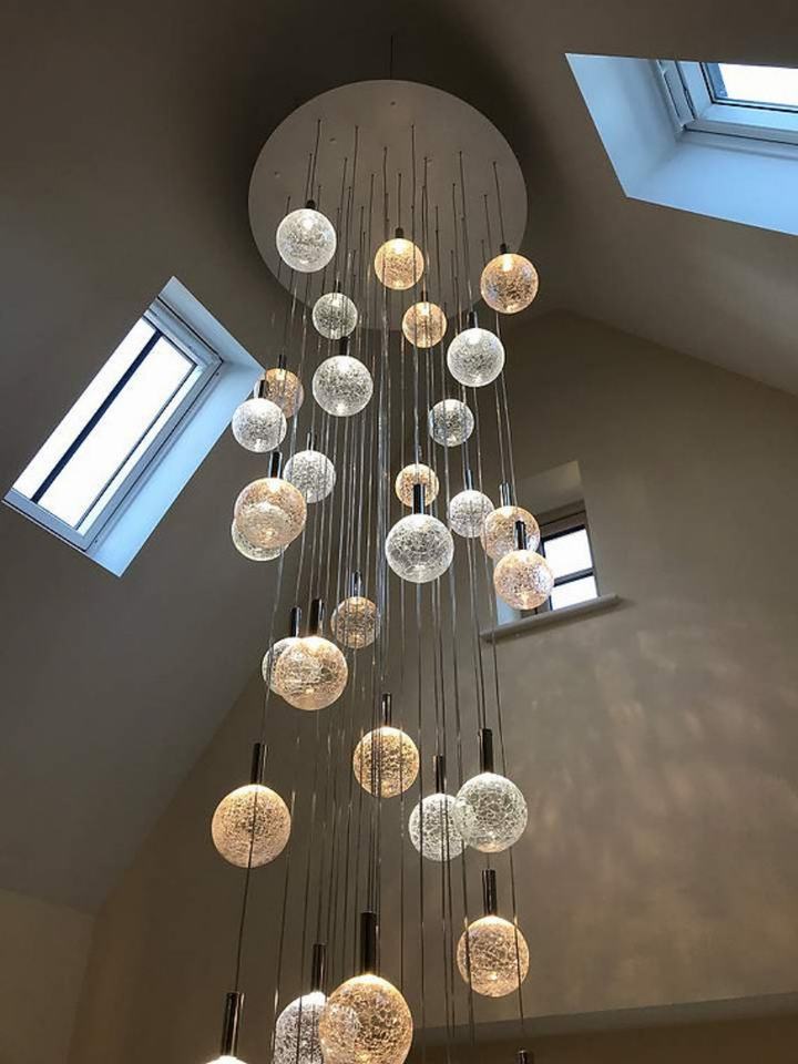 Lustre moderne en verre fait main de forme unique, abat-jour nordique, décoration de chambre, suspension en fer