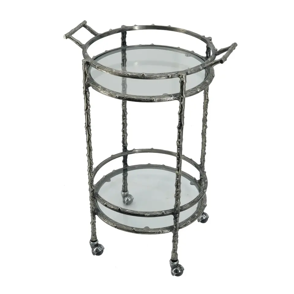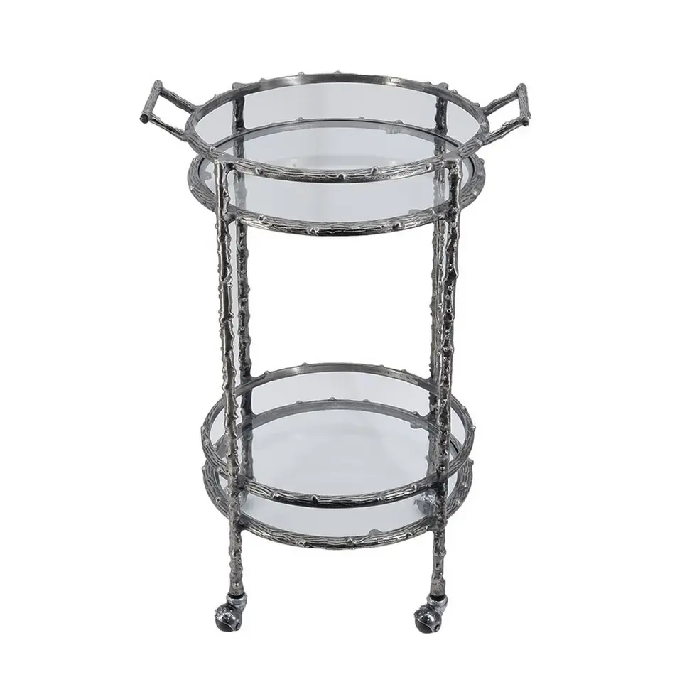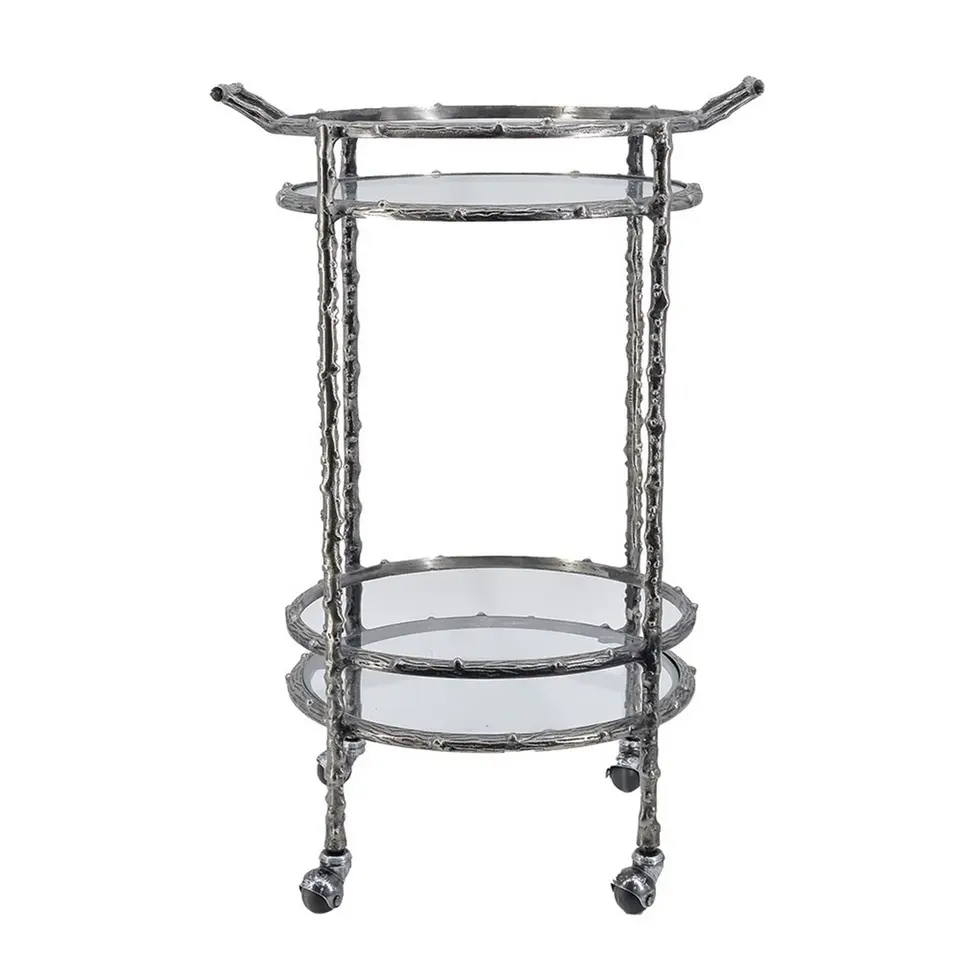 Chariot de bar roulant décoratif en métal fait main moderne pour la décoration intérieure, mobilier d'hôtel industriel écologique en PC, plaqué sécurisé