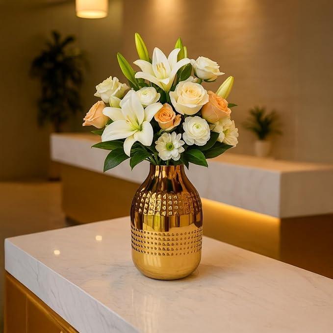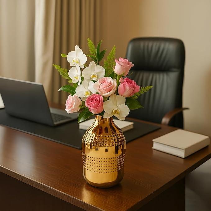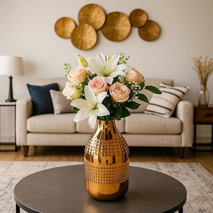Vase à fleurs en métal fait main moderne, finition élégante, écologique, résistant à la rouille, décoration élégante pour la maison, pour les salons et les salles à manger